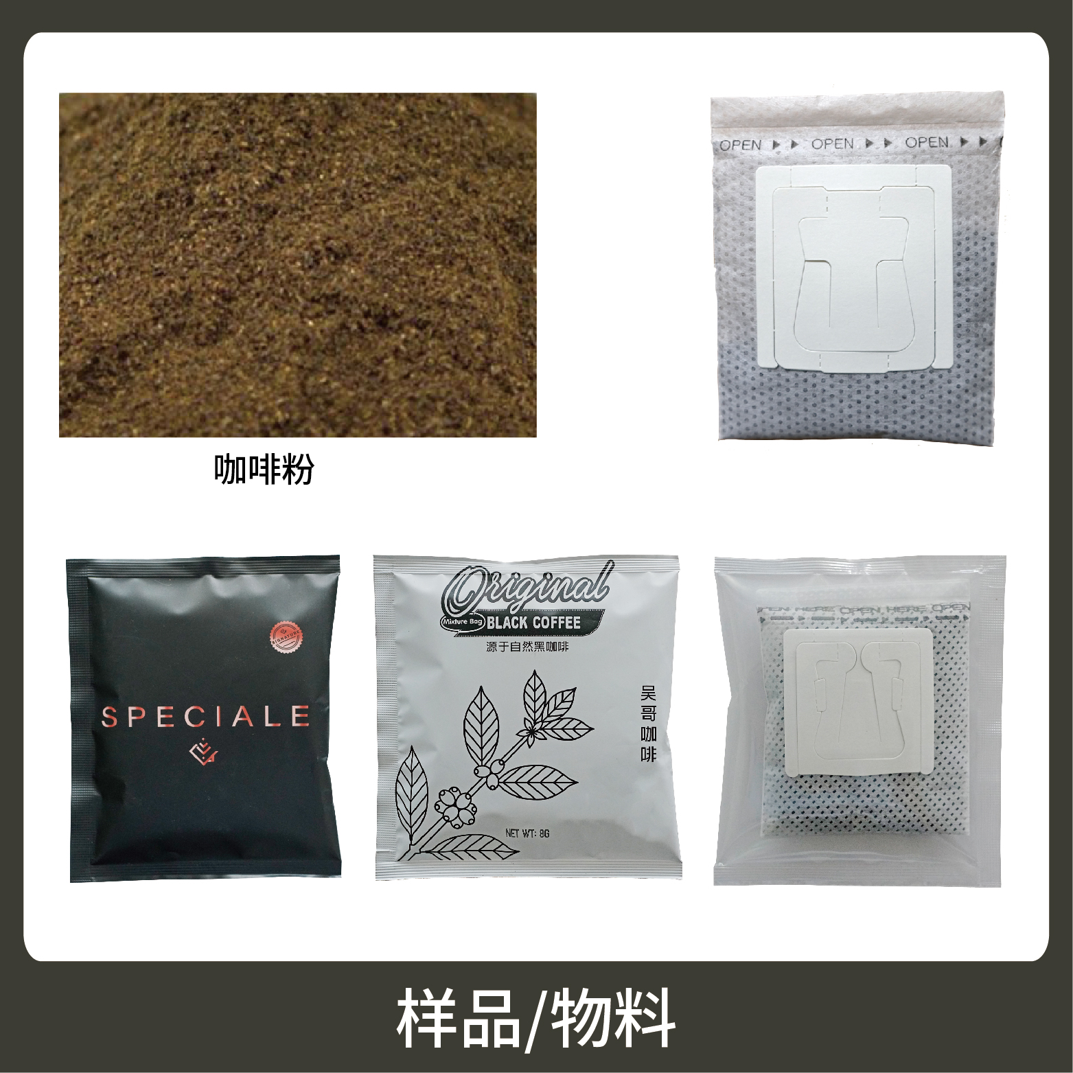 5、包裝材料:復(fù)合膜、尼龍、玉米纖維、掛耳咖啡膜。