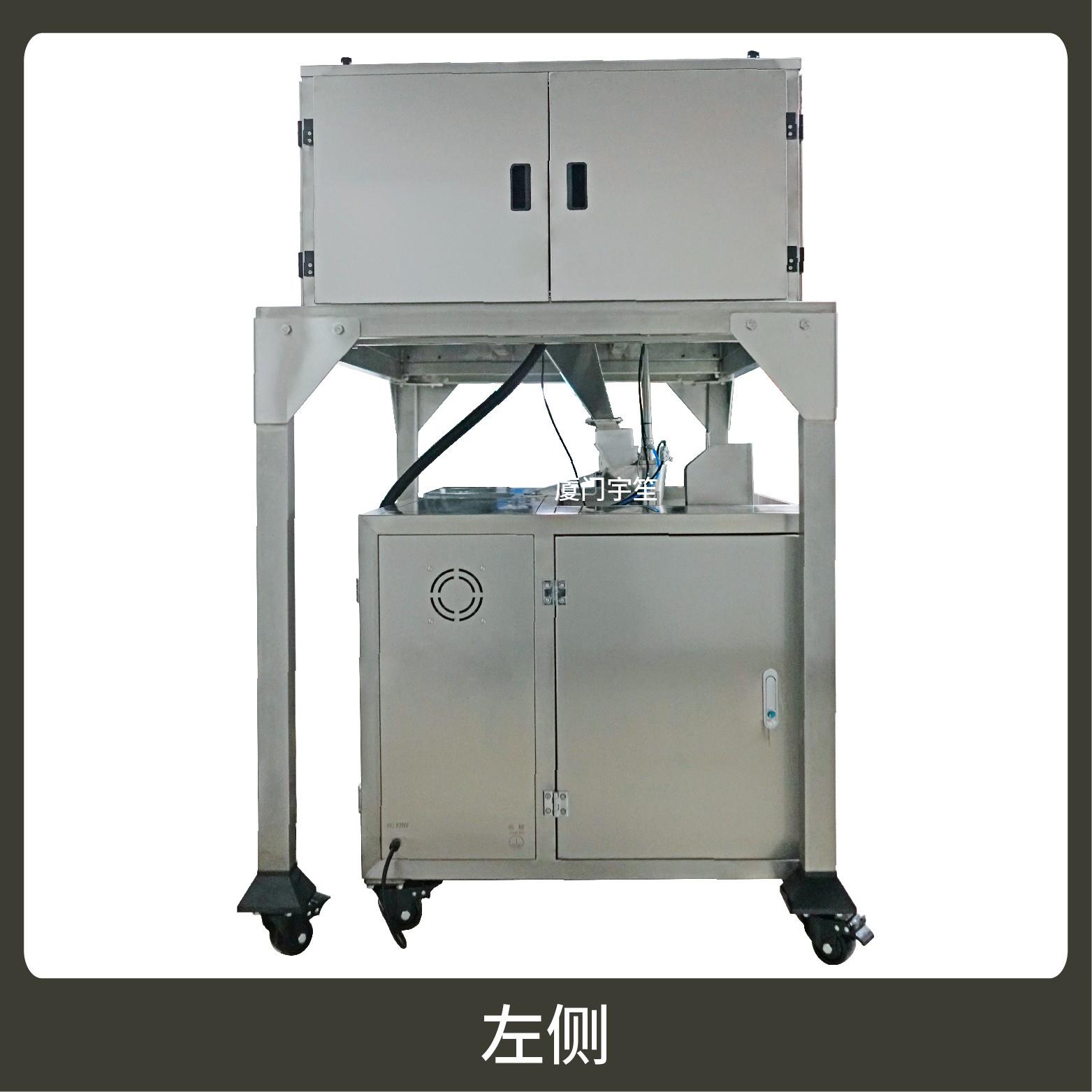 2、適用站立袋、包裝流程全自動、無需人工操作??筛鶕?jù)充填物料的性質選配不同的下料結構