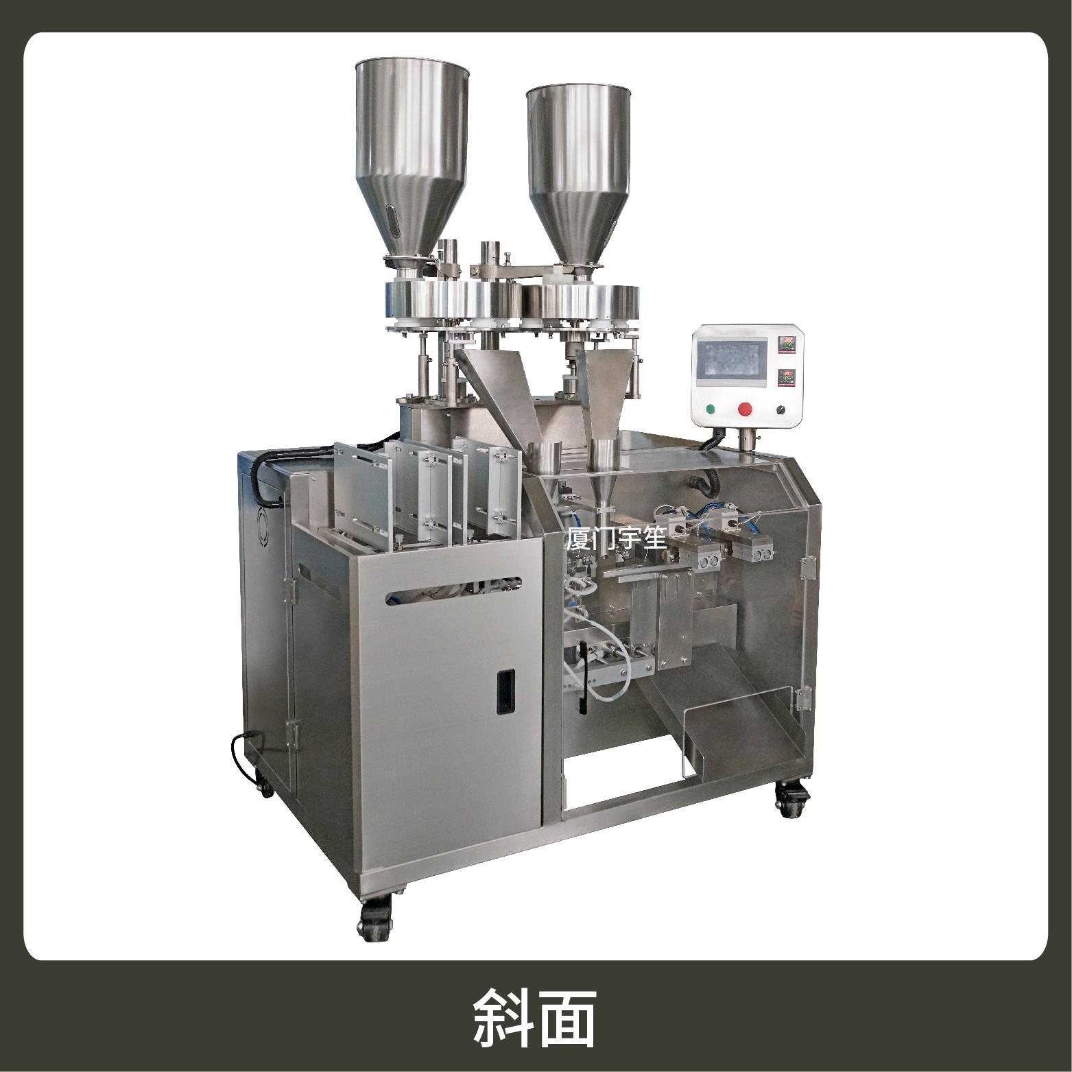 1、成品雙出,速度快,包裝流程全自動(dòng),無需人工操作??筛鶕?jù)充填物料的性質(zhì)選配不同的下料結(jié)構(gòu)。